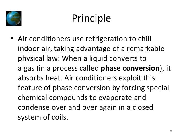How air conditioning works The essential ingredients in an air conditioning system are a fan to blow air around, a cold The compression also heats the gas, as will be understood by anyone who has pumped up a cycle tyre. The hot gas is then led away from the room, to be ... Access Doc
