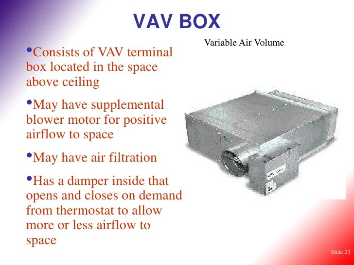 The basics Contents Air conditioning system with VAV controlled rooms Variable air volume – how it works The air volume works as a closed control loop, i.e. measurement – comparison – control. The VAV controller receives the flow signal based on ... Retrieve Here